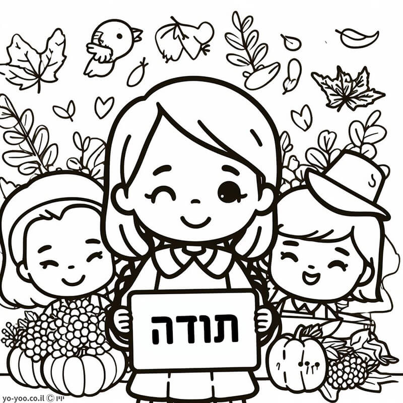 דף צביעה של ילדים עם תודה להדפסה או להורדה בחינם, למחשב או לטלפון (אפשר להדפיס גם מהטלפון)