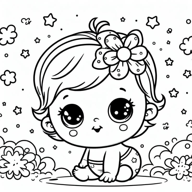 דף צביעה של תינוקת להדפסה בחינם