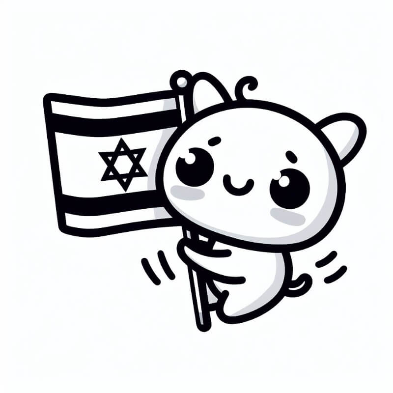 דף צביעה תמונה של יצור חמוד עם דגל ישראל לצביעה בחינם להדפסה או צביעה אונליין