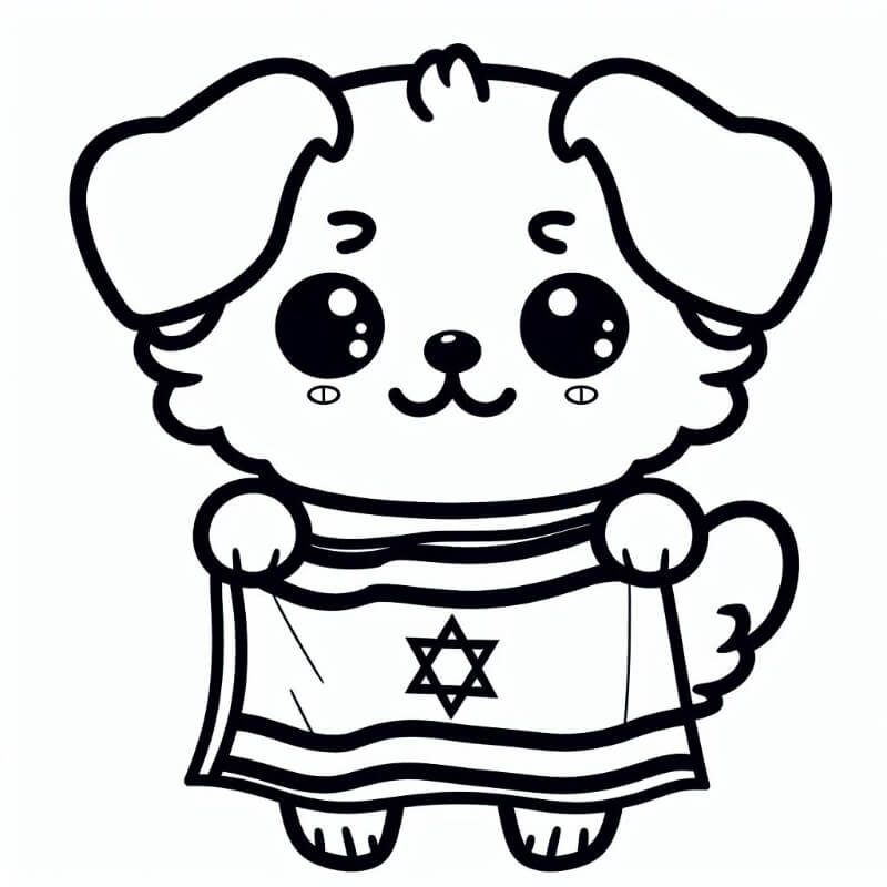 דף צביעה תמונה של כלב חמוד עם דגל ישראל לצביעה בחינם להדפסה או צביעה אונליין