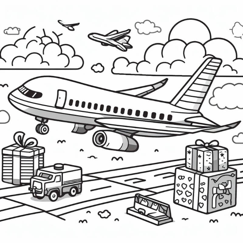 דף צביעה של מטוס בשדה תעופה להדפסה או להורדה בחינם, למחשב או לטלפון (אפשר להדפיס גם מהטלפון)