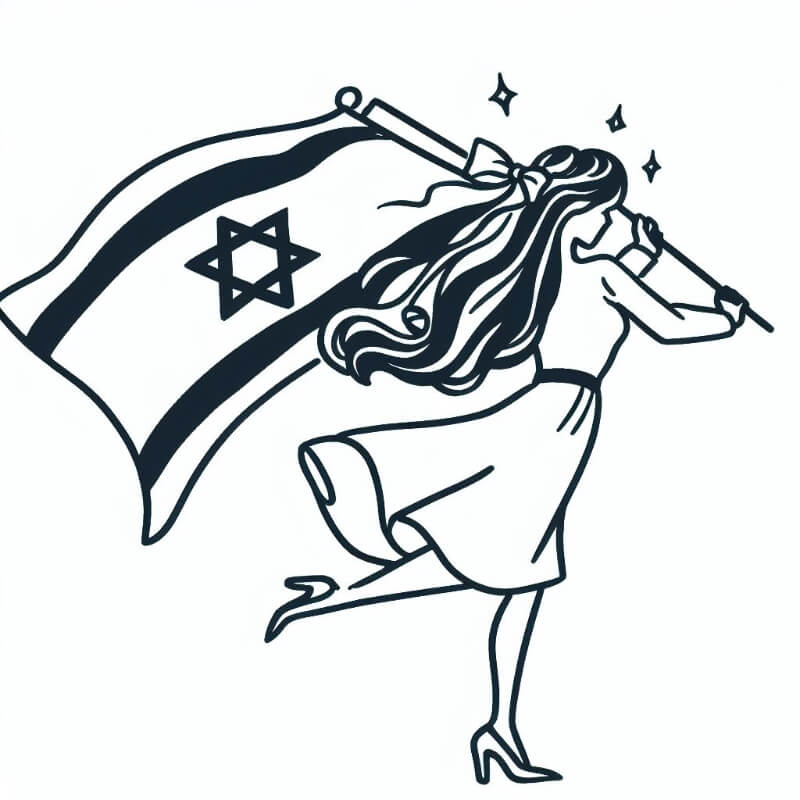ציור של אישה עם דגל ישראל לצביעה, איור של אישה עם דגל ישראל להדפסה לצביעה לילדים