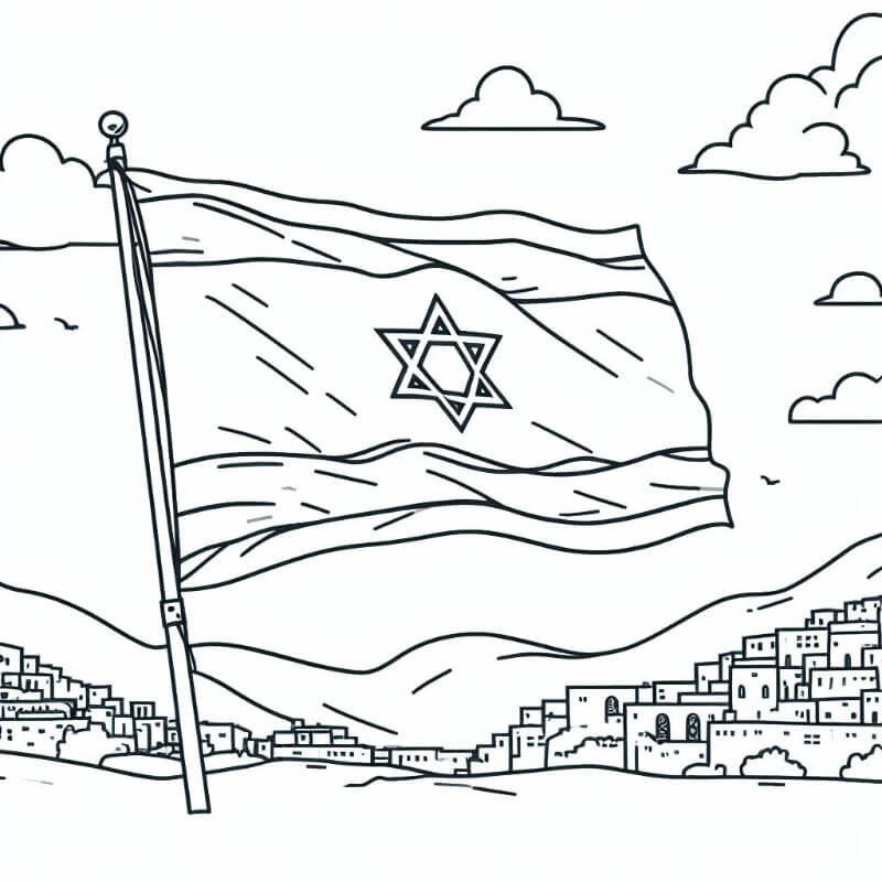 דף צביעה של דגל ישראל מתנופף להדפסה או להורדה בחינם, למחשב או לטלפון (אפשר להדפיס גם מהטלפון)