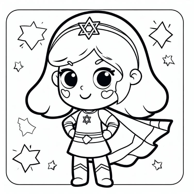 דף צביעה של ישראלית להדפסה או להורדה בחינם, למחשב או לטלפון (אפשר להדפיס גם מהטלפון) ציור של ישראלית לצביעה, איור של ישראלית להדפסה לצביעה לילדים