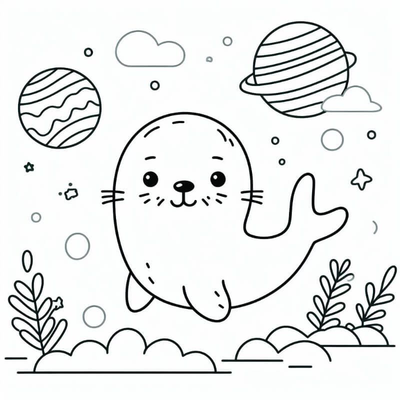 ציור של גור כלב ים לצביעה, איור של גור כלב ים להדפסה לצביעה לילדים