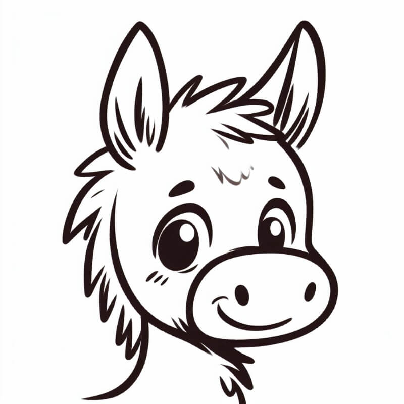 דף צביעה תמונה של פנים של חמור לצביעה בחינם להדפסה או צביעה אונליין
