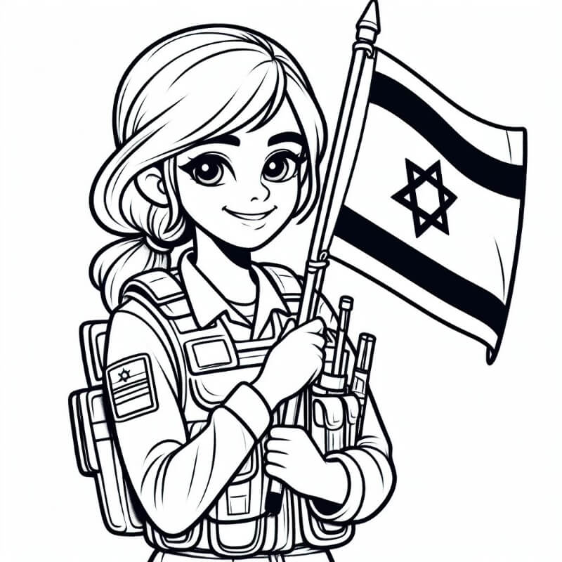 דף צביעה של חיילת מחייכת להדפסה או להורדה בחינם, למחשב או לטלפון (אפשר להדפיס גם מהטלפון)