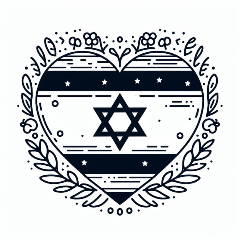 דף צביעה תמונה של לב עם מגן דוד לצביעה בחינם להדפסה או צביעה אונליין