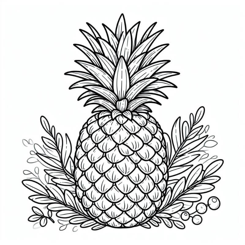 ציור של אננס לצביעה, איור של אננס להדפסה לצביעה לילדים
