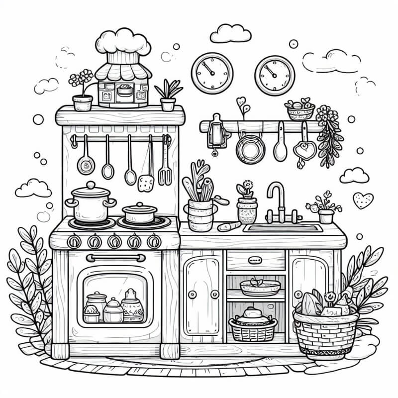 דף צביעה תמונה של דף צביעה של מטבח לילדים בחינם להדפסה או צביעה אונליין