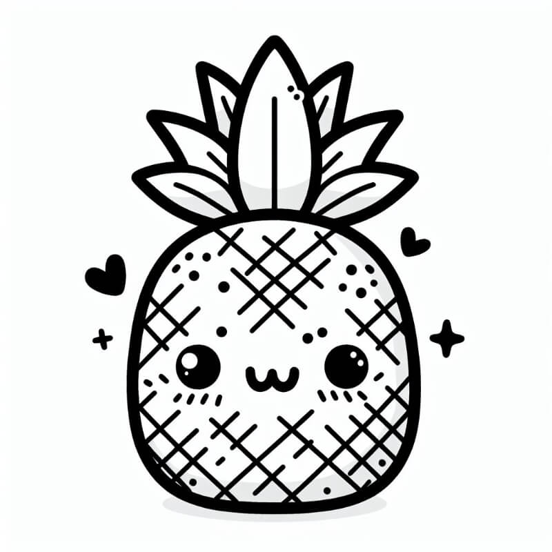 דף צביעה של אננס חמוד - דף צביעה של אננס חמוד להדפסה, ציור של אננס חמוד לצביעה בחינם