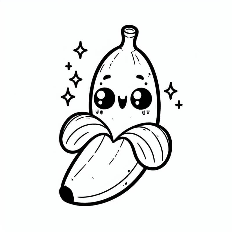 ציור של בננה חמודה לצביעה, איור של בננה חמודה להדפסה לצביעה לילדים