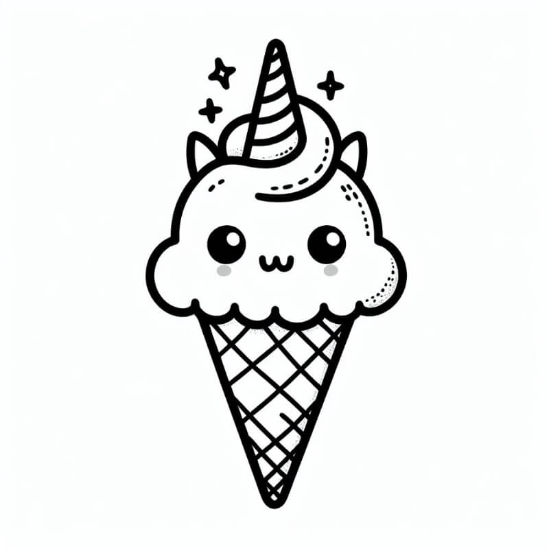 ציור של גביע גלידה חד קרן לצביעה, איור של גביע גלידה חד קרן להדפסה לצביעה לילדים
