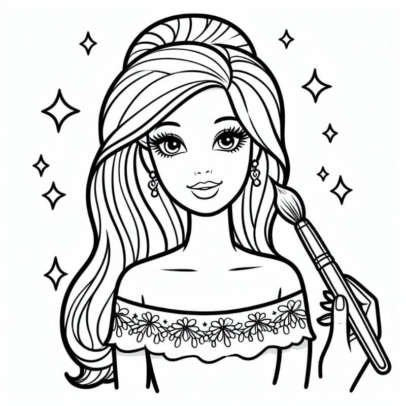 ציור של ברבי לצביעה, איור של ברבי להדפסה לצביעה לילדים