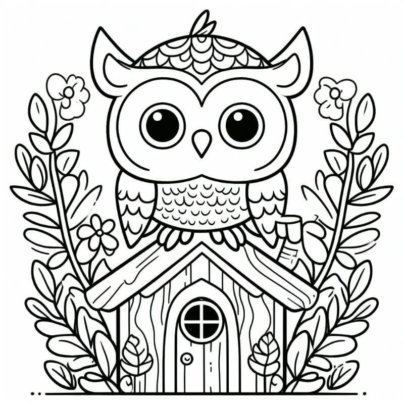 דף צביעה תמונה של דף צביעה של בית ינשוף בחינם להדפסה או צביעה אונליין