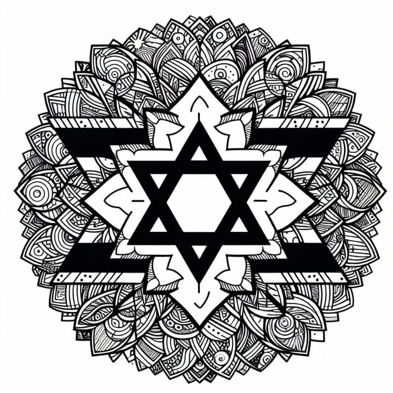 ציור של מנדלה דגל ישראל לצביעה, איור של מנדלה דגל ישראל להדפסה לצביעה לילדים