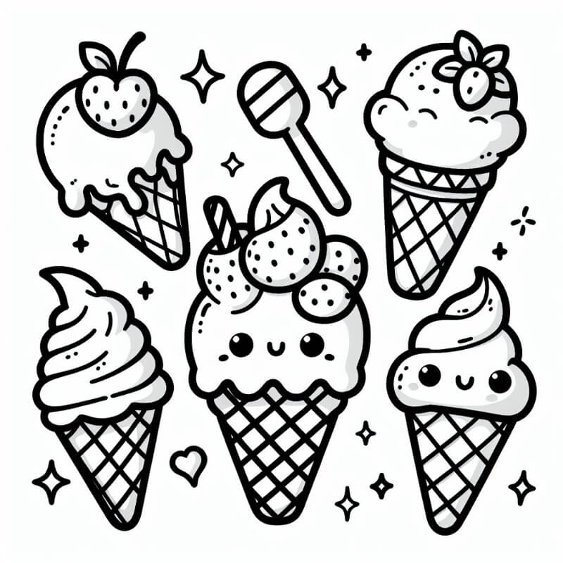 דף צביעה תמונה של דף צביעה של גלידות בחינם להדפסה או צביעה אונליין
