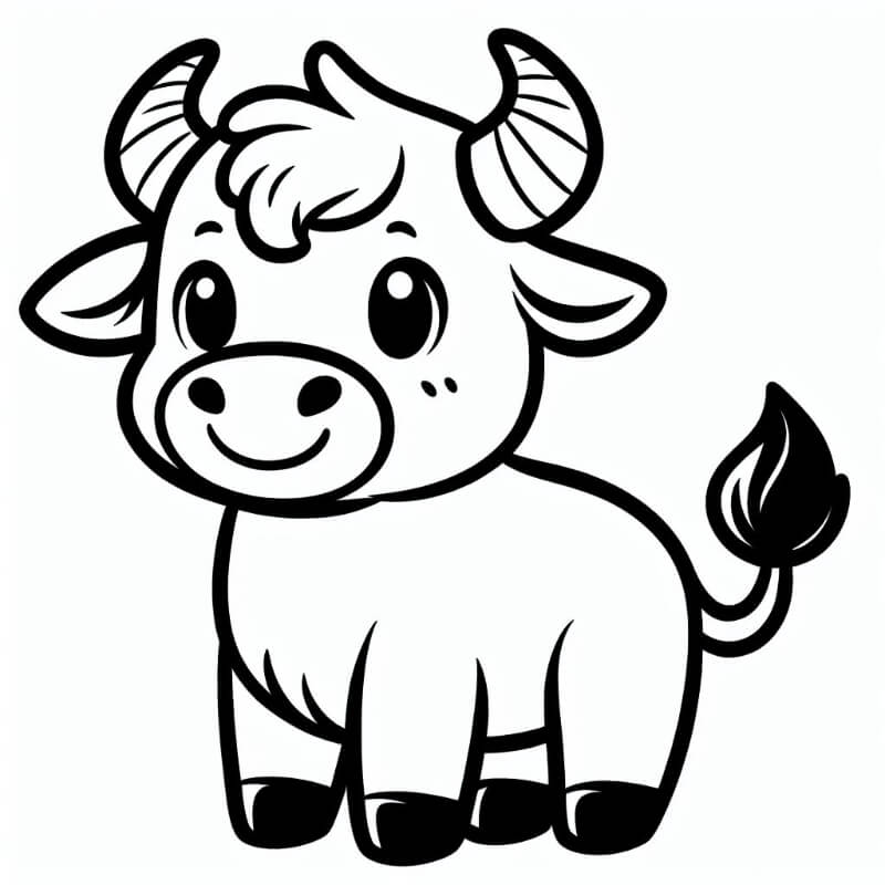 דף צביעה של פר להדפסה או להורדה בחינם, למחשב או לטלפון (אפשר להדפיס גם מהטלפון) ציור של פר לצביעה, איור של פר להדפסה לצביעה לילדים