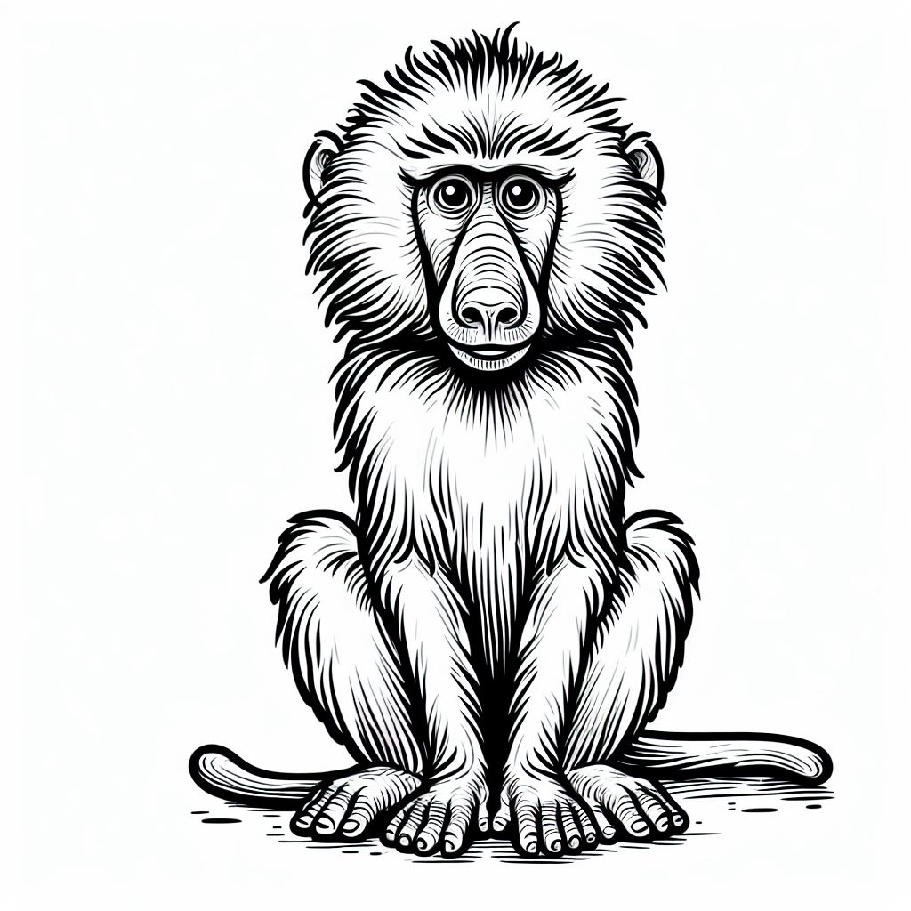 תמונה של בבון בשחור לבן להדפסה בחינם. דף עבודה לצביעה של בבון להורדה או שמירה במחשב.