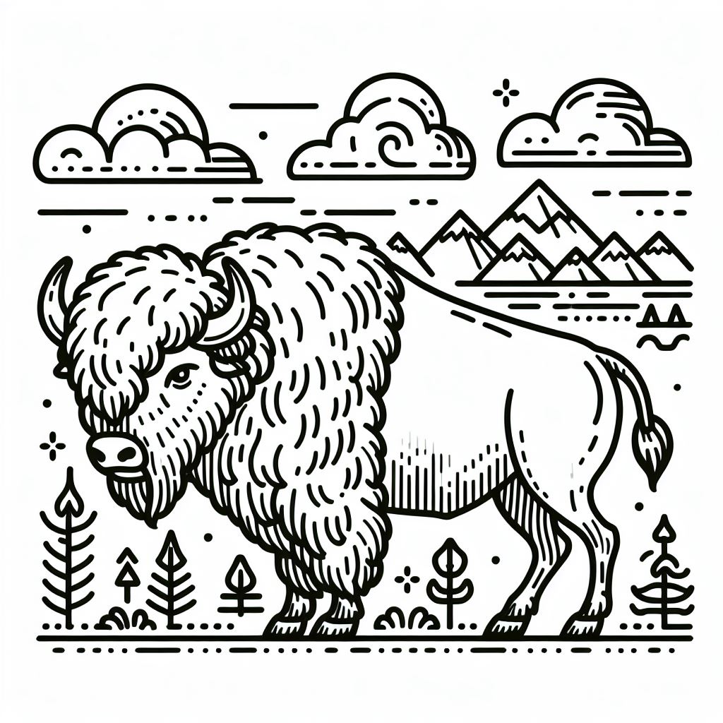 ציור של ביזון לצביעה, איור של ביזון להדפסה לצביעה לילדים
