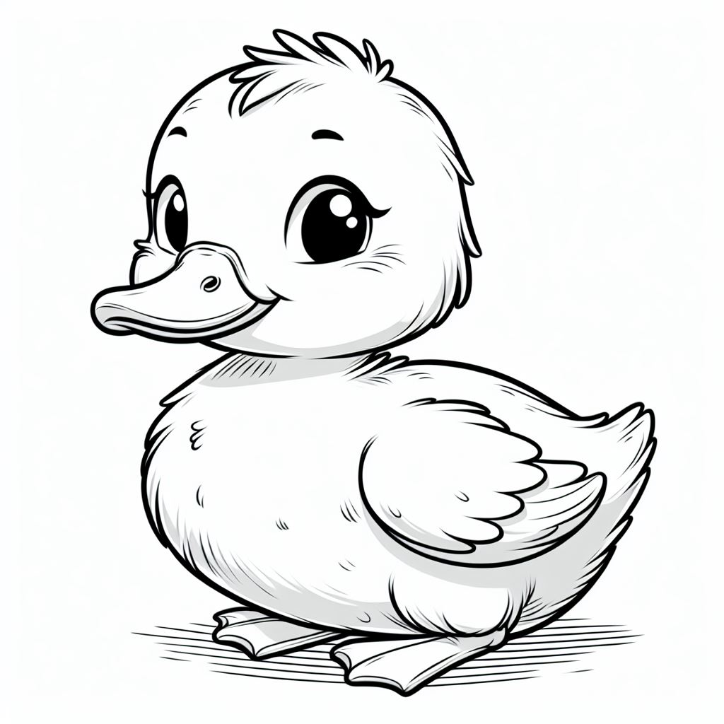 ציור של ברווזון לצביעה, איור של ברווזון להדפסה לצביעה לילדים