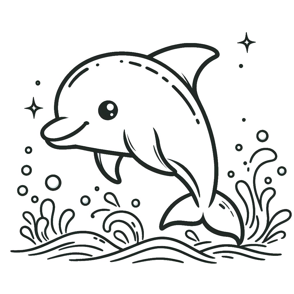 דף צביעה של דולפין להדפסה או להורדה בחינם, למחשב או לטלפון (אפשר להדפיס גם מהטלפון) ציור של דולפין לצביעה, איור של דולפין להדפסה לצביעה לילדים