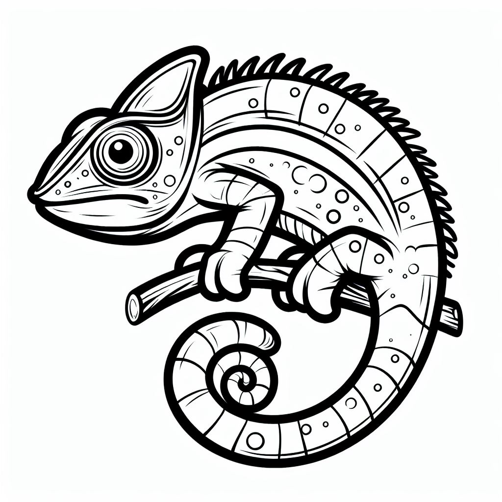 דף צביעה של זיקית - דף צביעה של זיקית להדפסה, ציור של זיקית לצביעה בחינם
