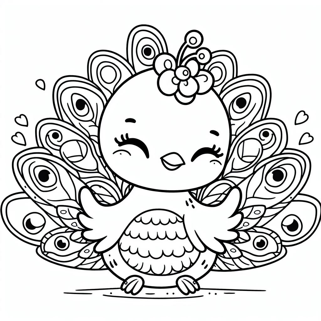 ציור של טווס לילדים לצביעה, איור של טווס לילדים להדפסה לצביעה לילדים