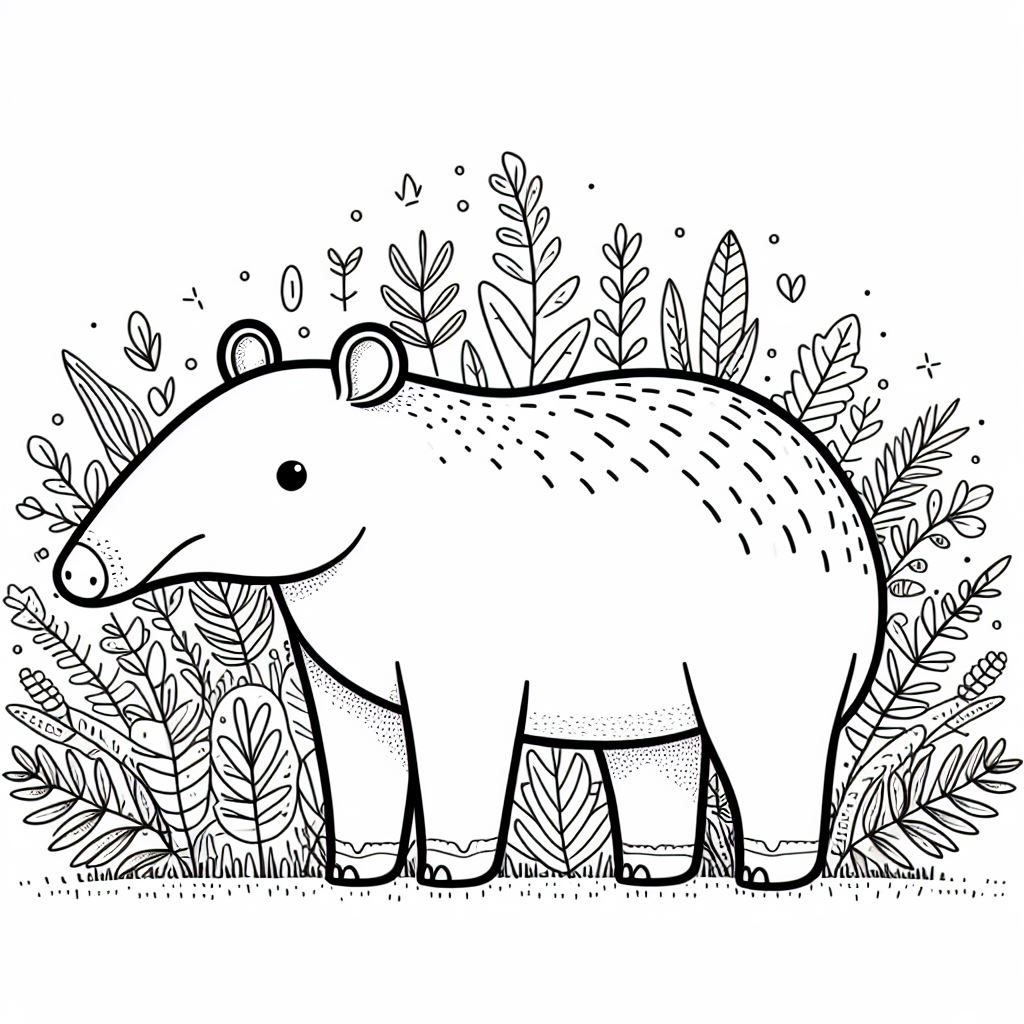 ציור של טפיר לצביעה, איור של טפיר להדפסה לצביעה לילדים