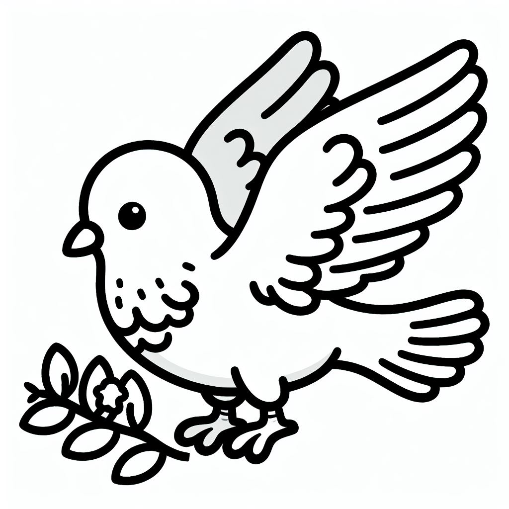 ציור של יונה לצביעה, איור של יונה להדפסה לצביעה לילדים
