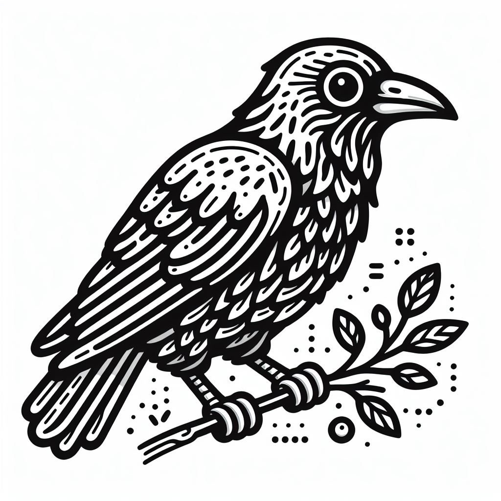 ציור של עורב לצביעה, איור של עורב להדפסה לצביעה לילדים