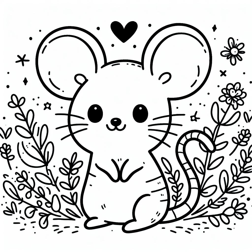 ציור של עכבר לצביעה, איור של עכבר להדפסה לצביעה לילדים