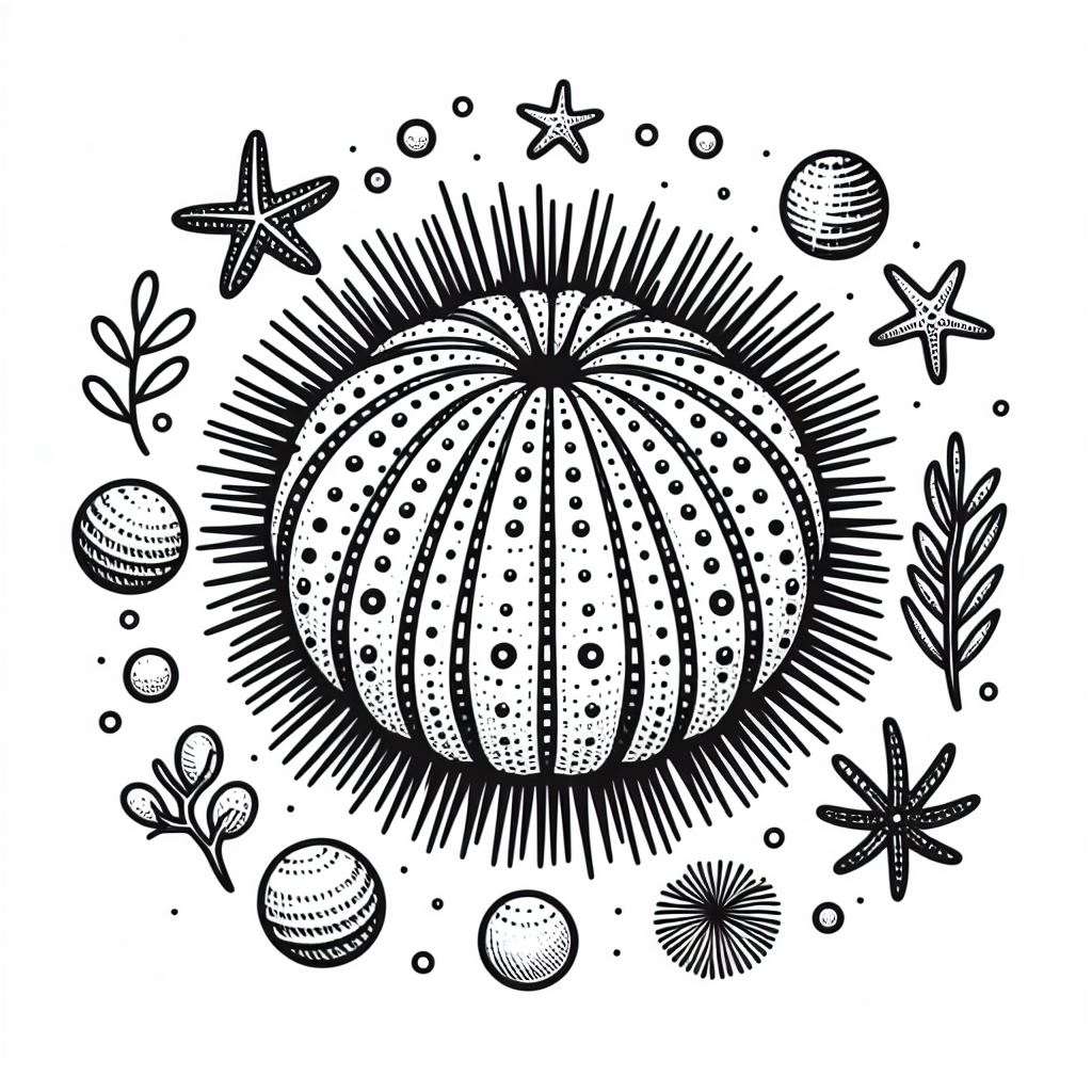 תמונה של קיפוד ים בשחור לבן להדפסה בחינם. דף עבודה לצביעה של קיפוד ים להורדה או שמירה במחשב.