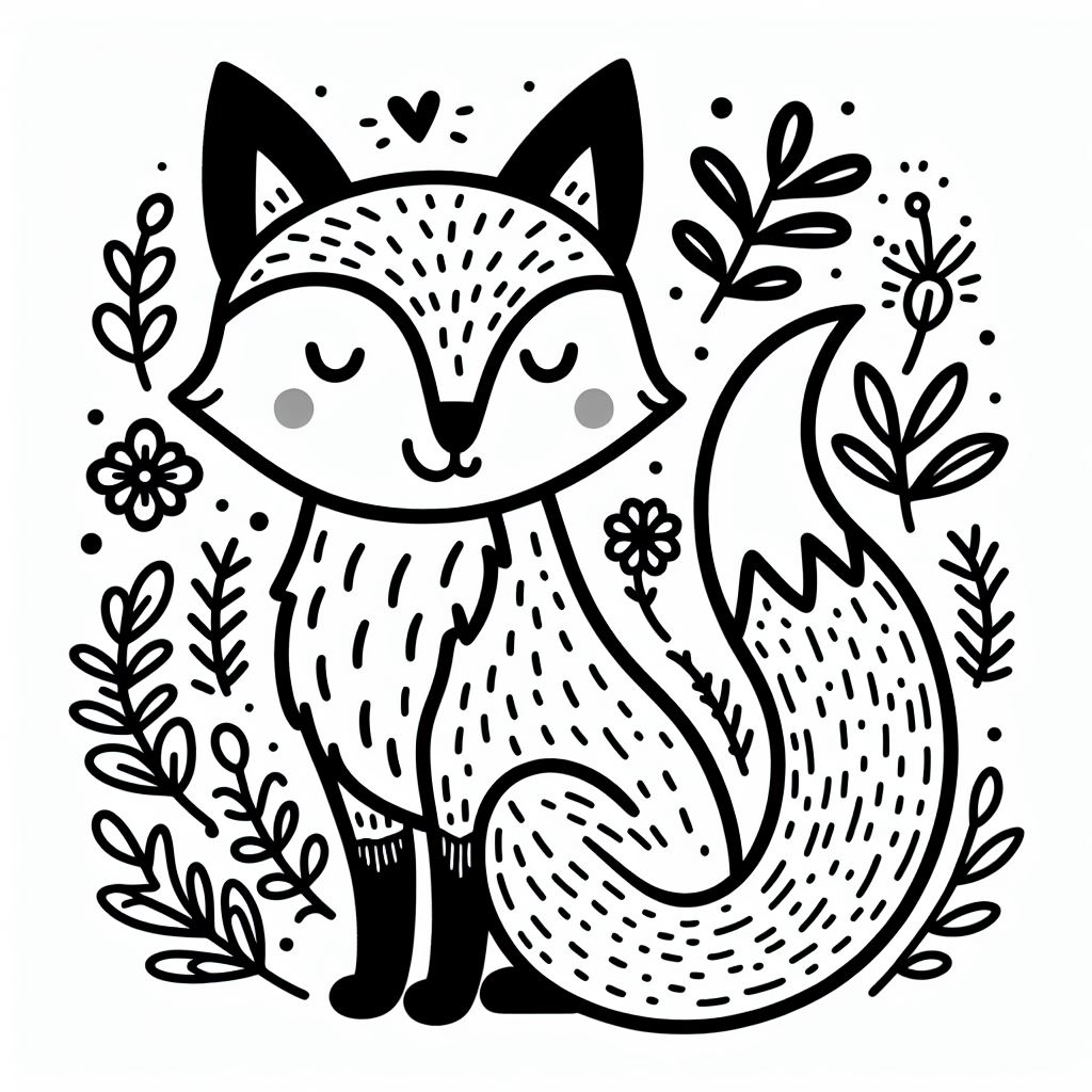 ציור של שועל לצביעה, איור של שועל להדפסה לצביעה לילדים