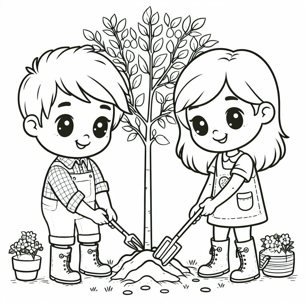 דף צביעה תמונה של נטיעות טו בשבט לצביעה בחינם להדפסה או צביעה אונליין