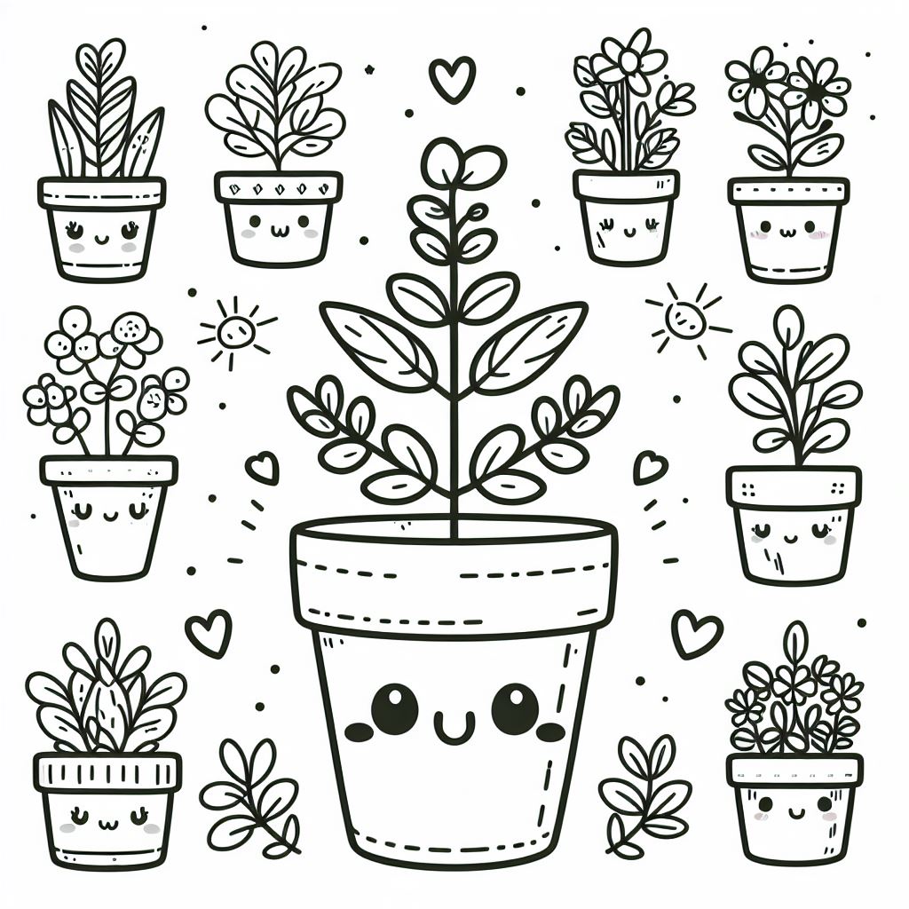 דף צביעה תמונה של דף צביעה של שתילים בעציצים בחינם להדפסה או צביעה אונליין