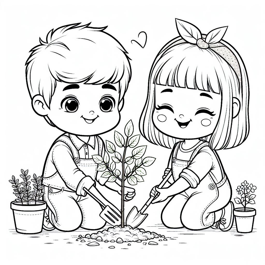 דף צביעה תמונה של דף צביעה של נטיעת עץ בחינם להדפסה או צביעה אונליין