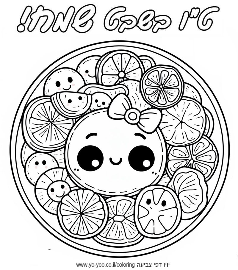 דף צביעה תמונה של ברכה עם פירות יבשים לצביעה בחינם להדפסה או צביעה אונליין