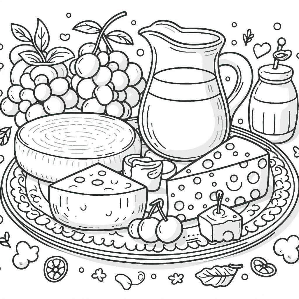 דף צביעה של מגש גבינות להדפסה או להורדה בחינם, למחשב או לטלפון (אפשר להדפיס גם מהטלפון)