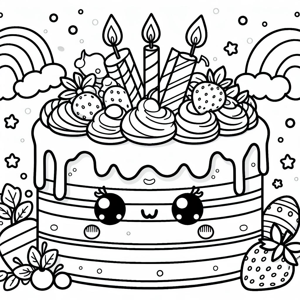 דף צביעה תמונה של דף צביעה של עוגה חמודה בחינם להדפסה או צביעה אונליין