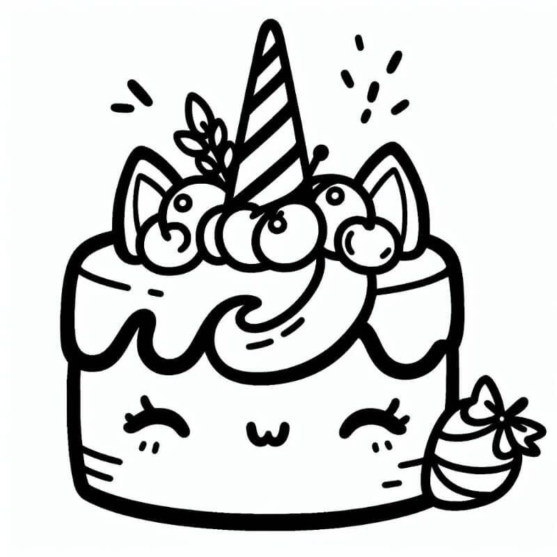 דף צביעה תמונה של עוגה עם קרן לצביעה בחינם להדפסה או צביעה אונליין
