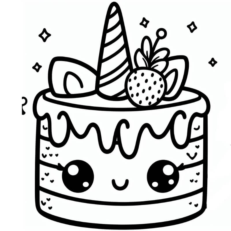 ציור של עוגת חד קרן לצביעה, איור של עוגת חד קרן להדפסה לצביעה לילדים