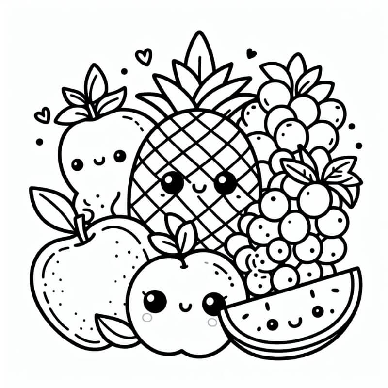 ציור של פירות חמודים לצביעה, איור של פירות חמודים להדפסה לצביעה לילדים