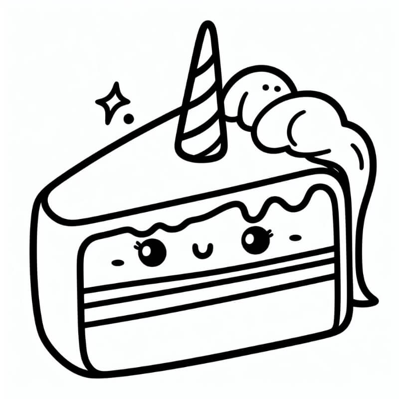 דף צביעה תמונה של פרוסת עוגה חד קרן לצביעה בחינם להדפסה או צביעה אונליין