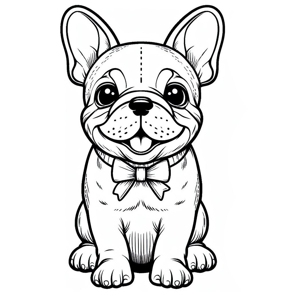 ציור של בולדוג חמוד לצביעה, איור של בולדוג חמוד להדפסה לצביעה לילדים