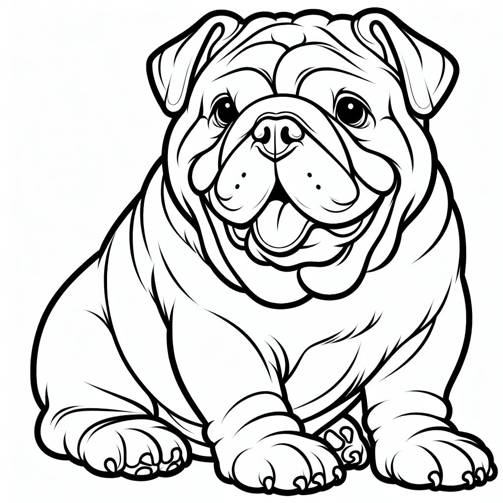 ציור של בולדוג אנגלי לצביעה, איור של בולדוג אנגלי להדפסה לצביעה לילדים