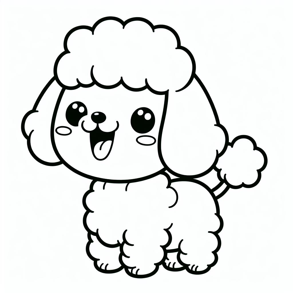 ציור של גור פודל לצביעה, איור של גור פודל להדפסה לצביעה לילדים