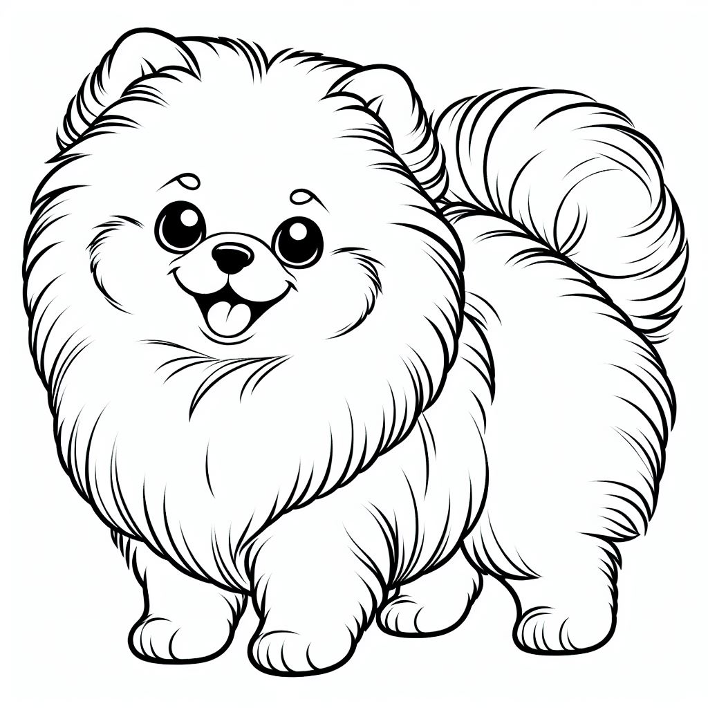 דף צביעה של פומרניאן חמוד להדפסה או להורדה בחינם, למחשב או לטלפון (אפשר להדפיס גם מהטלפון) ציור של פומרניאן חמוד לצביעה, איור של פומרניאן חמוד להדפסה לצביעה לילדים