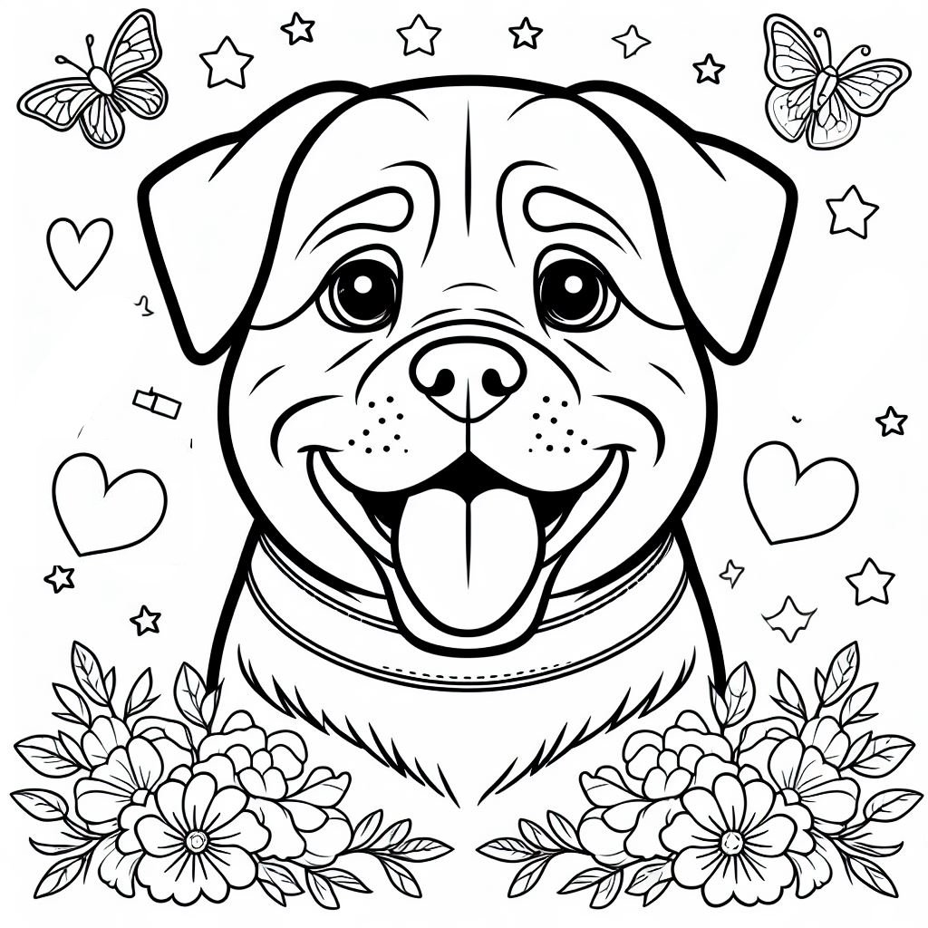 ציור של רוטווילר לצביעה, איור של רוטווילר להדפסה לצביעה לילדים