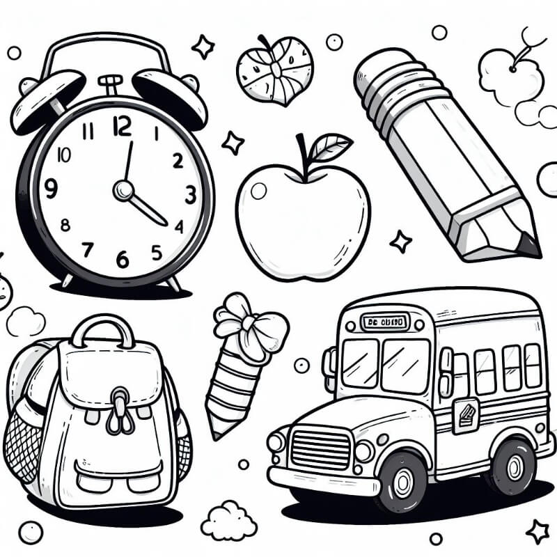 תמונה של חזרה לבית הספר בשחור לבן להדפסה בחינם. דף עבודה לצביעה של חזרה לבית הספר להורדה או שמירה במחשב.